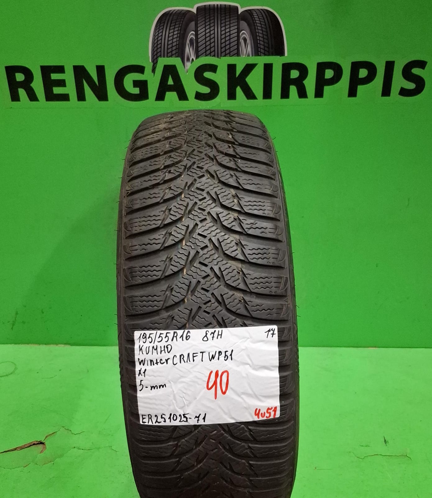 195/55R16 Kumho WinterCraft WP51 87H kitka 5mm / 4V51