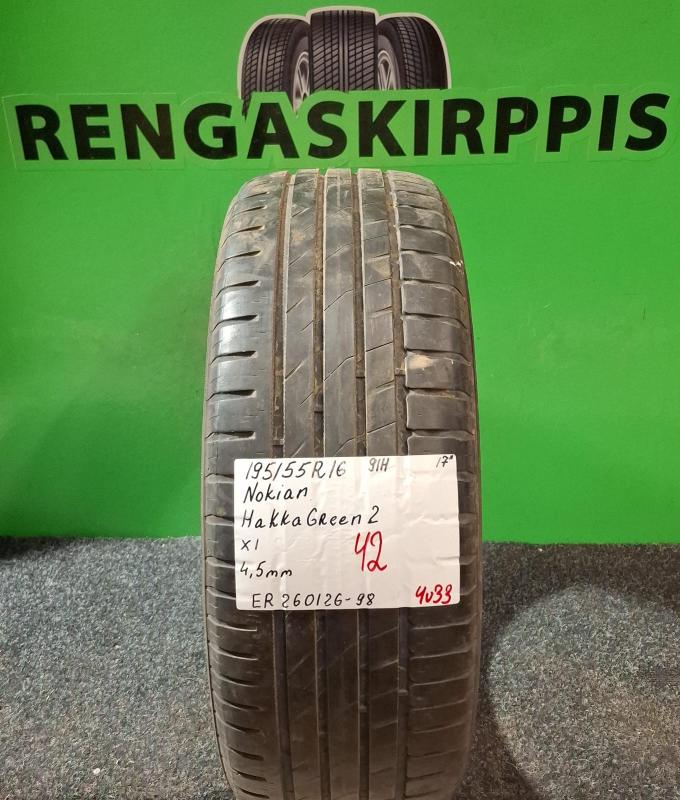 195/55R16 Nokian Hakka Green 2 91H kesä 4,5mm / 4V33